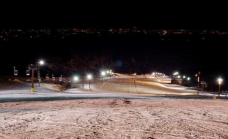標高650メートルの雄大で変化に富んだゲレンデは、初心者から上級者まで楽しめます。ナイター完備。
