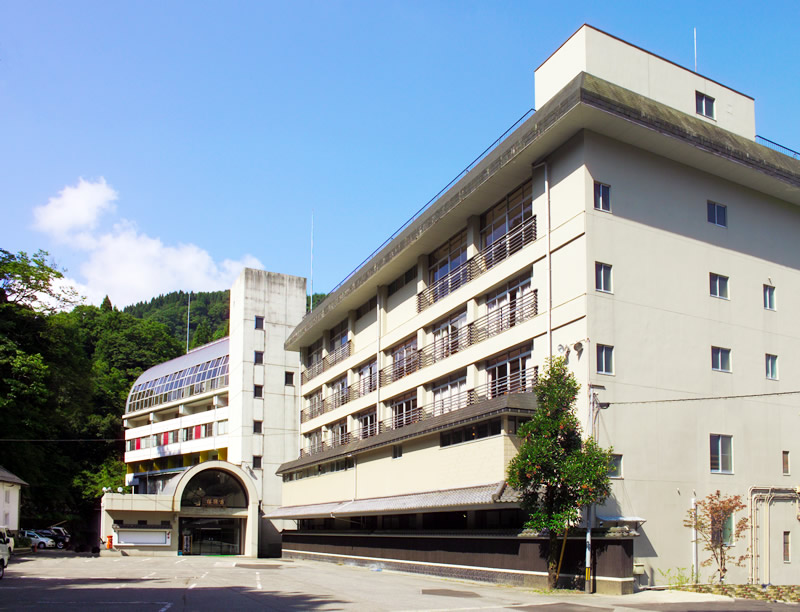 山田川を背にして建つ、家族ずれやグループに人気のある清楚で明るい旅館です。魚と山菜料理が人気です。